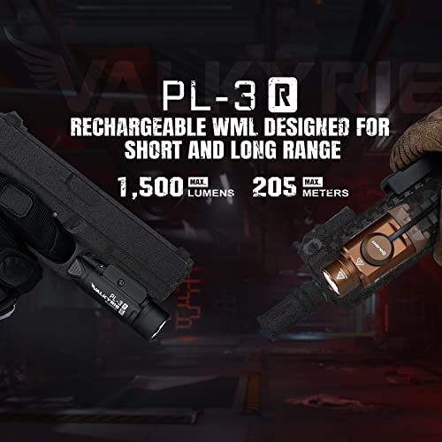OLIGHT PL-3R Valkyrie Rechargeable Tactical Light, 1500 Lumens Rail-Mounted Weaponlight, LED Flashlight with Built-in Battery, Rail Locating Keys for 1913 Picatinny, GL Style