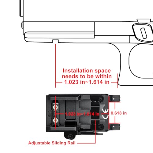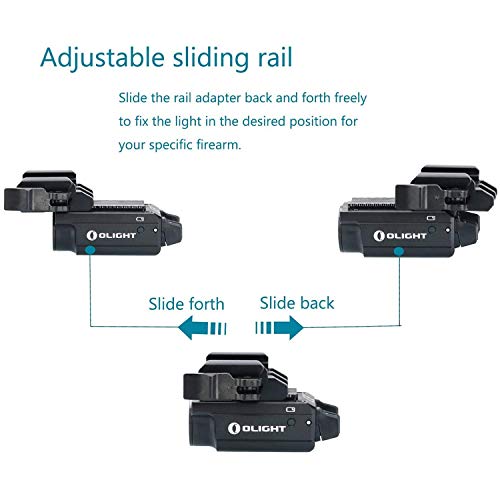[𝗔𝗱𝗷𝘂𝘀𝘁𝗮𝗯𝗹𝗲 𝗥𝗮𝗶𝗹 (𝗮𝘂𝘁𝗵𝗼𝗿𝗶𝘇𝗲𝗱 𝗽𝗮𝘁𝗲𝗻𝘁)] Slide the rail adapter back and forth freely to fix the light in the desired position for your specific firearm, making the PL-MINI 2 compatible with most pistols including subcompacts