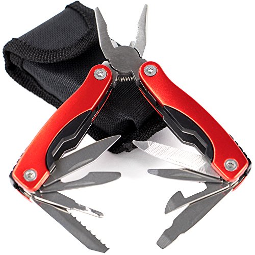11-In-1: Each multitool comes with pliers, wire cutters, saw, Phillips-head screwdriver, small flat-head screwdriver, pen knife, bottle opener, large flat head screw driver, can opener, leather punch, and rasp