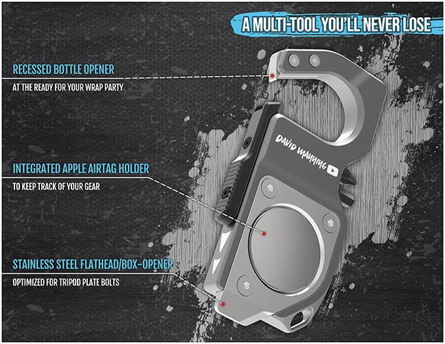 An integrated flathead/box cutter combo ensures camera plates are tight and makes quick work of Amazon boxes.