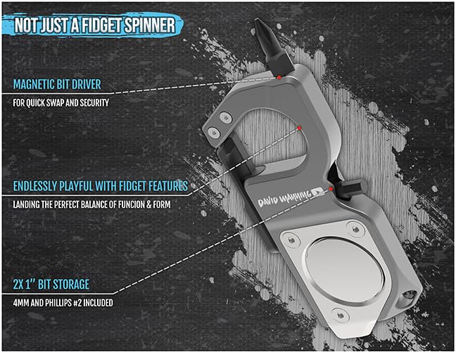 KONDOR BLUE x David Manning | EDC Clip Tool | Multi-Tool with AirTag Holder, Magnetic Bit Storage, Flathead/Box Cutter, Bottle opener, & Fidgetable | Space Gray