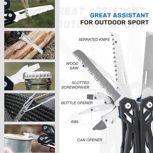Wide Applications – All the tools have well-sized holes or bumps for easy opening. It is an ideal multi-pliers for outdoor activities like camping, fishing, hiking, cooking, picnic, DIY, and more