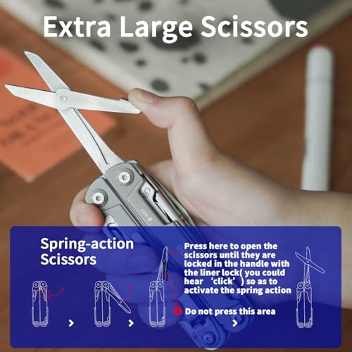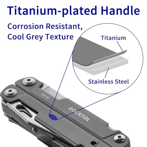 MULTI-TOOL WITH TITANIUM PLATED HANDLE: This everyday carry multi-tool pliers are constructed of ultra-durable 3Cr13 stainless steel for the main body and the handle is plated with Titanium for sturdy wear withstanding. The engineering machined handle and safe locking design make it easy and comfortable to open and use.