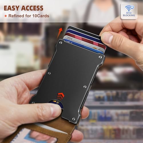LONG LASTING–Crafted from high-quality materials,including genuine leather and aluminum alloy,this wallet is built to withstand daily use and offers long-lasting durability.